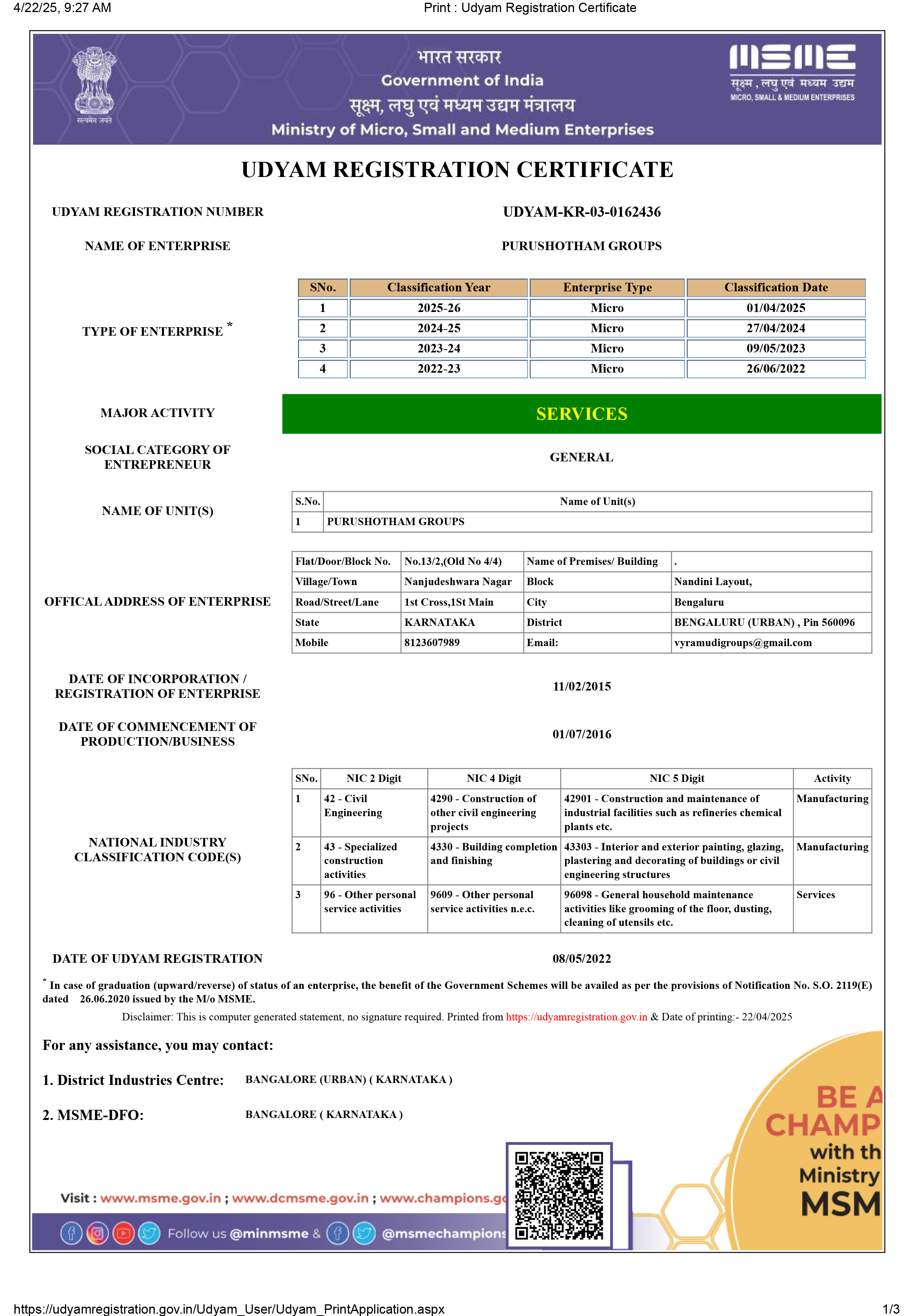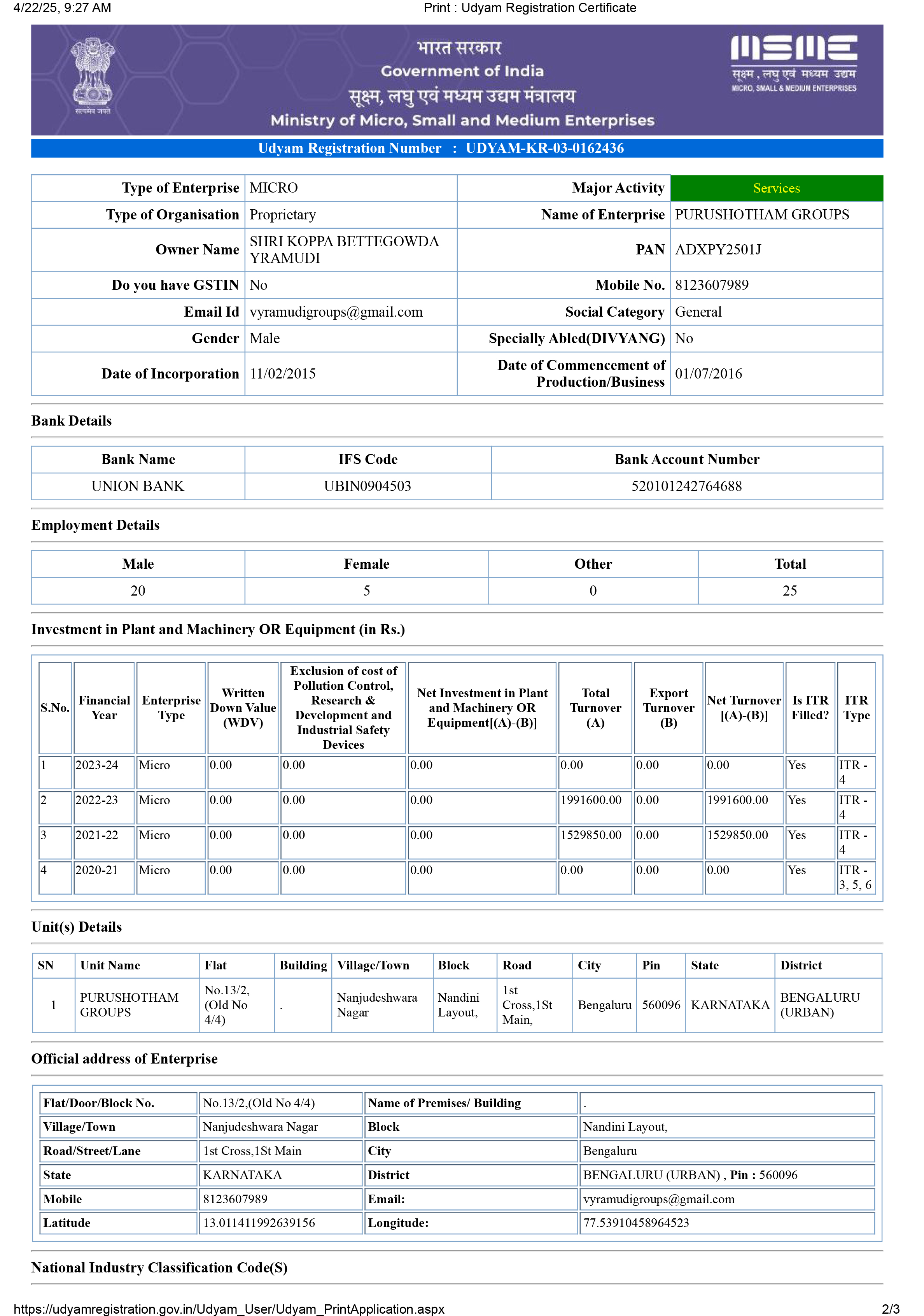 • 5 Branches(Bangalore, Mangalore, Mysore, Mandya, and Thumkur) And 3 Companies In Karnataka.