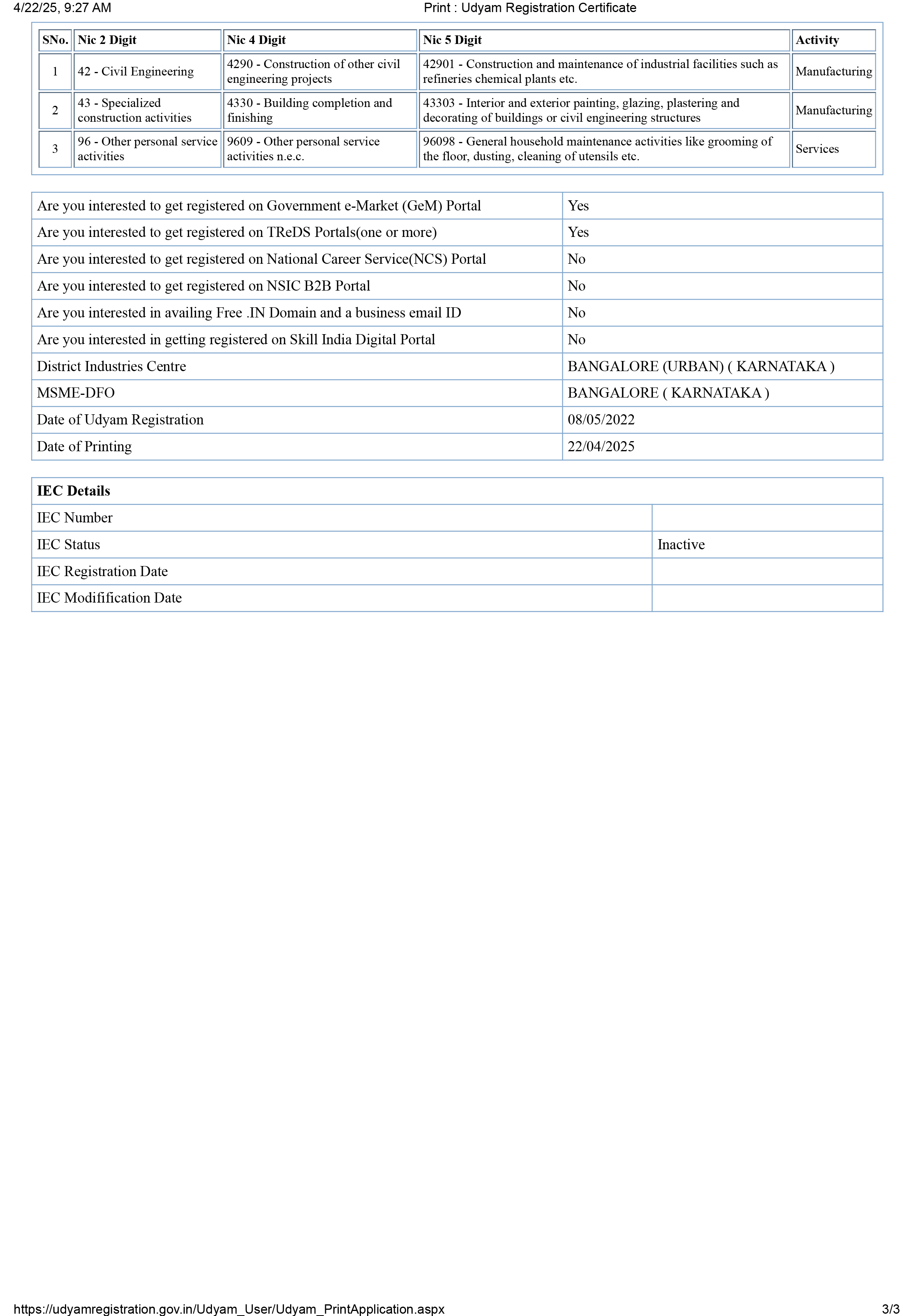 • We Have The Udyam Registration Certificate, ISO 9001 Certificate and Trade Mark Certificate